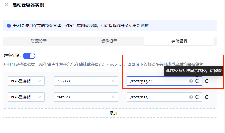 修改完成后,点击“确认”,CCI将重新启动,存储卷修改成功。