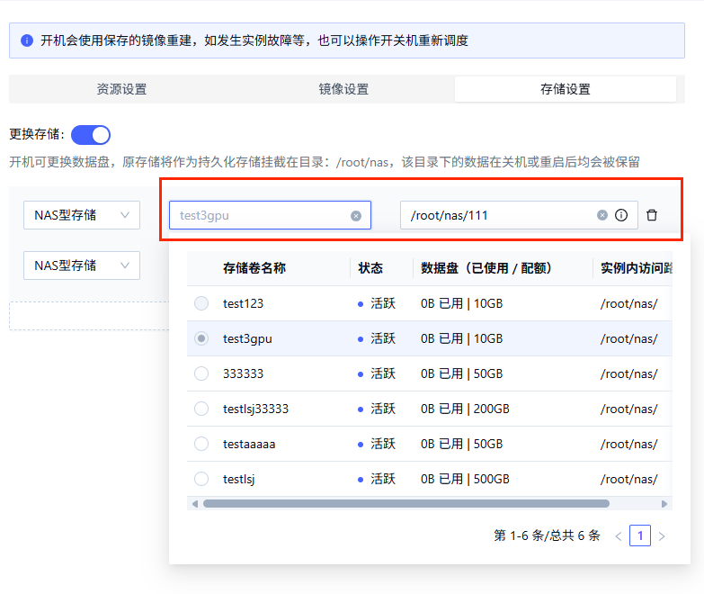 更换存储卷,点击输入框,在下拉窗口重新选择存储卷后,点击“确定”保存。
