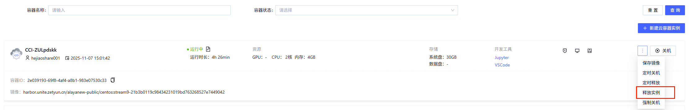 使用已注册的企业账号登录Alaya NeW平台,单击“产品中心 > 计算 > 云容器实例”菜单项,进入云容器实例页面。