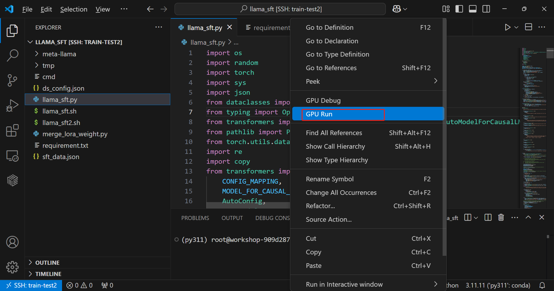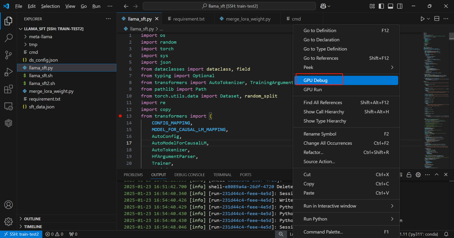 GPU RUN 和 RUN shell 以及 GPU DEBUG 都会产生一个session,点击GPU Debug 插件图标,可以查看session的列表,删除session,展示session日志,使用session命令行等