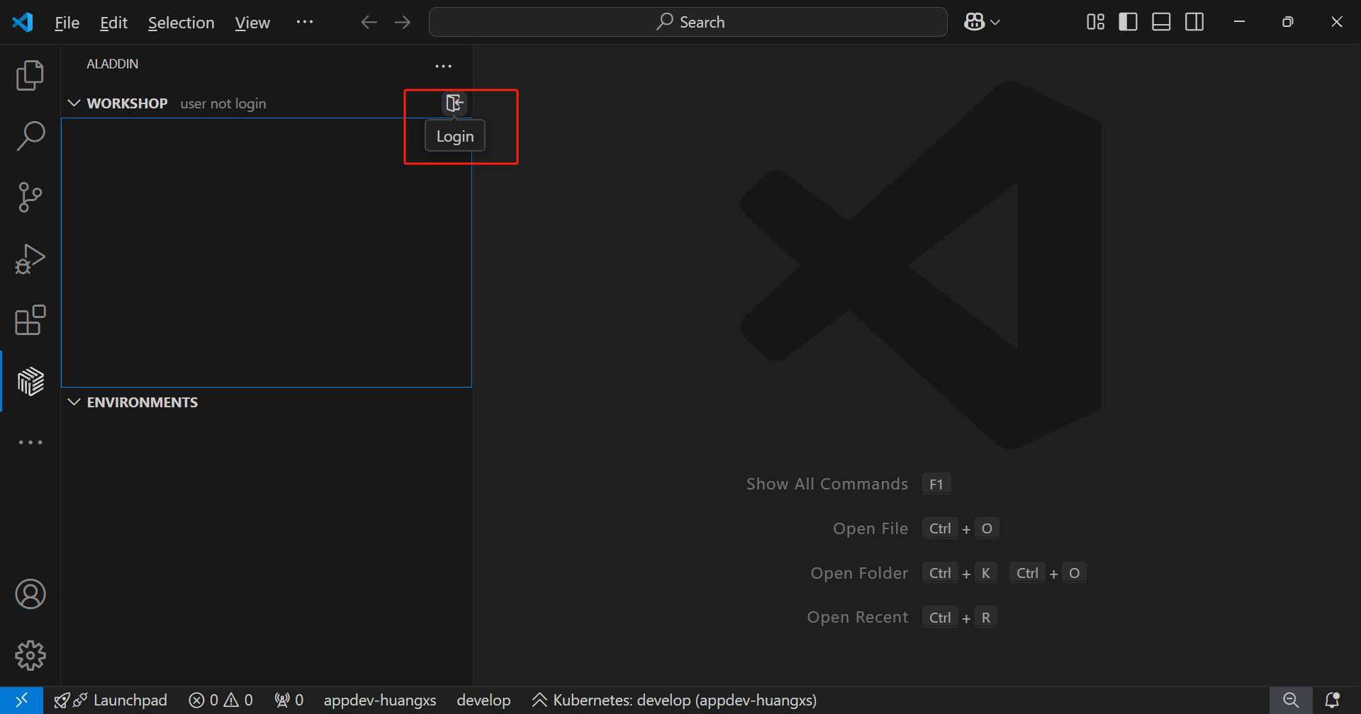 如果打开了vscode窗口,没有看到aladdin的图标,可以右键点击workshop 手动安装