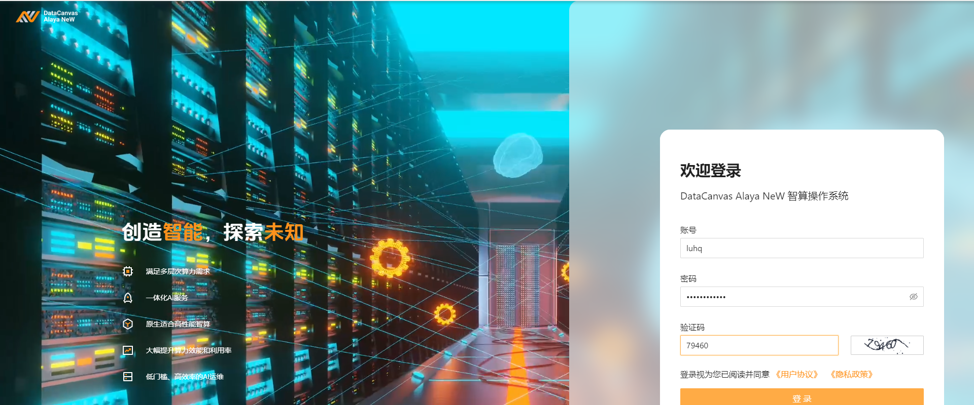 点击登录,弹出AlayaNeW登录页面,输入用户名和密码,点击登录按钮。