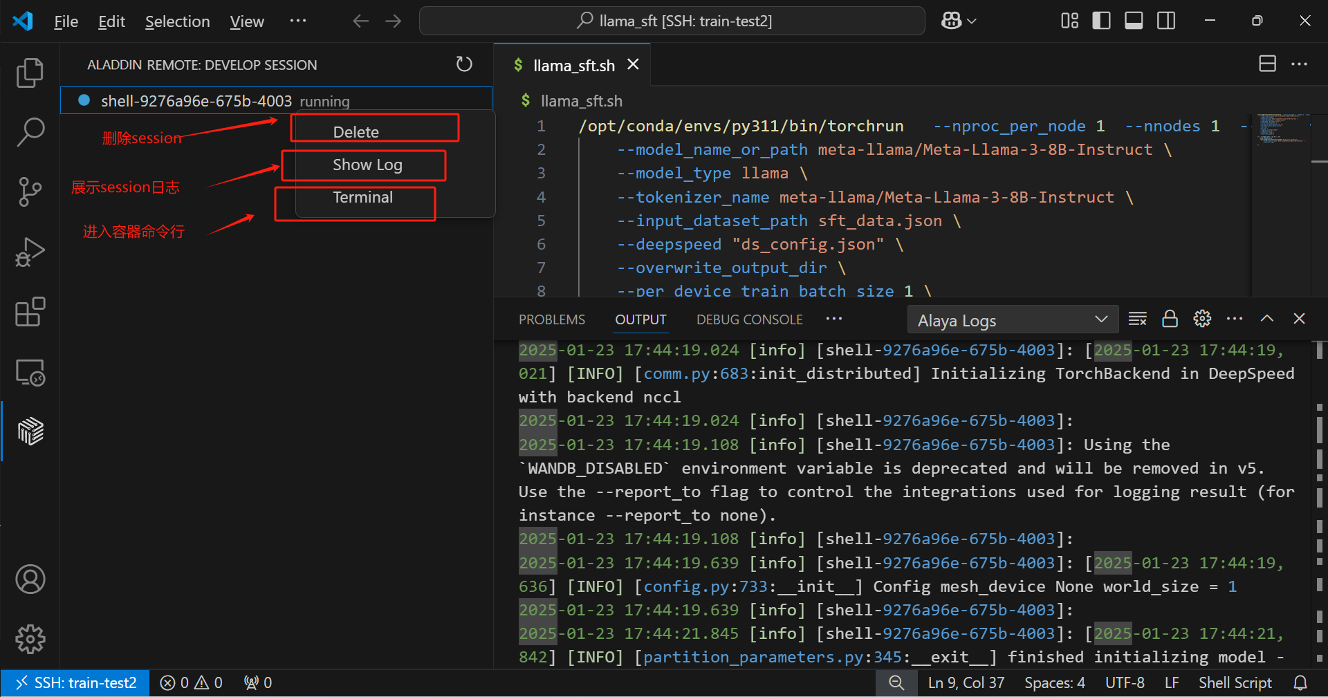 如果您有一个任务需要run很长时间,可直接关闭当前vscode,再次打开时仅需在session列表中找到,点击show log即可重新将日志输出到VSCode的OUTPUT中