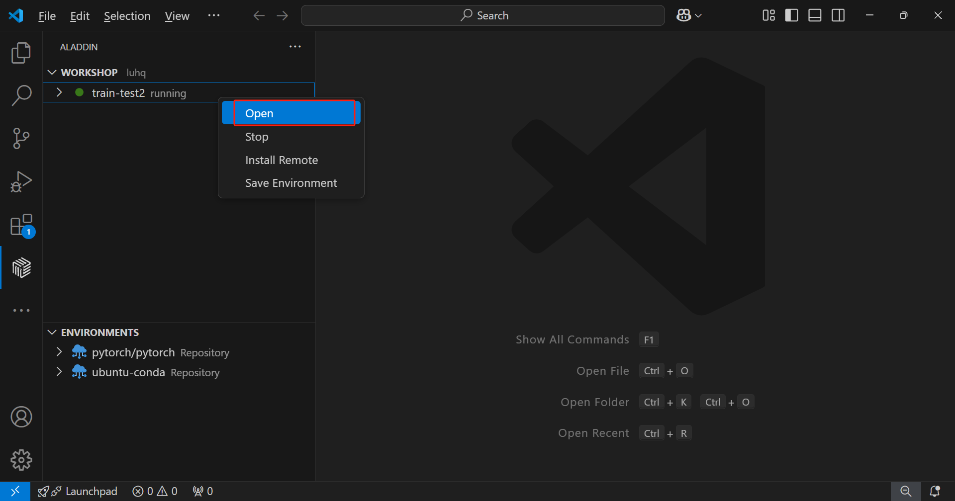 如果没有自动打开新的vscode窗口,可以右键点击workshop,手动打开