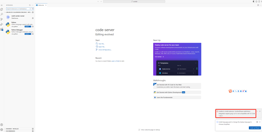 在LM Lab的workshop中,离线安装VS Code插件,报插件版本不一致问题